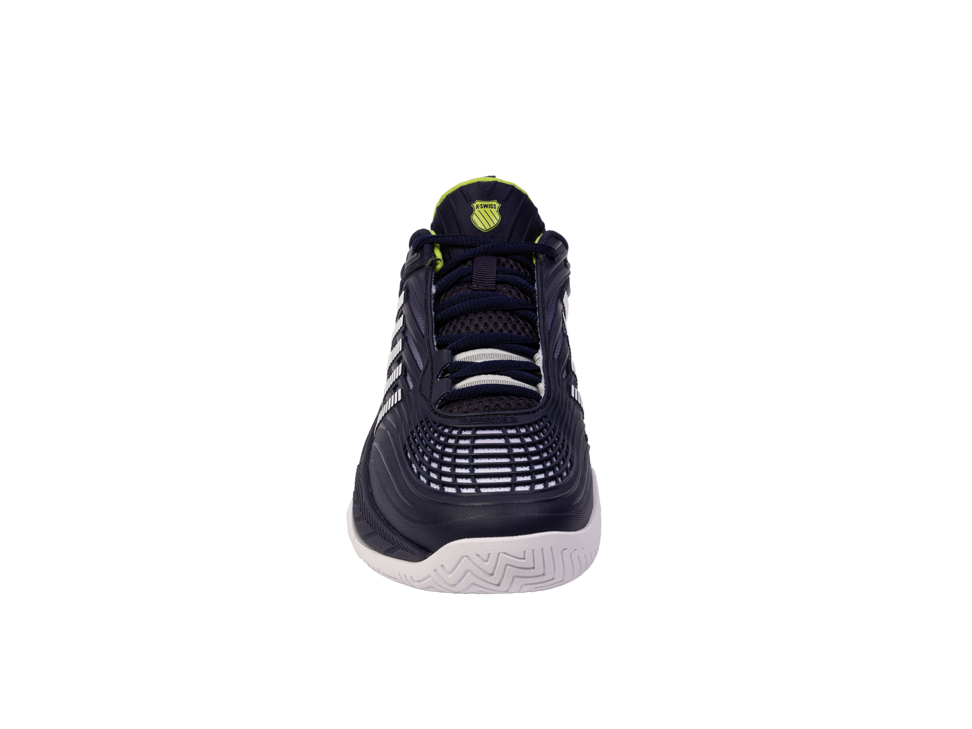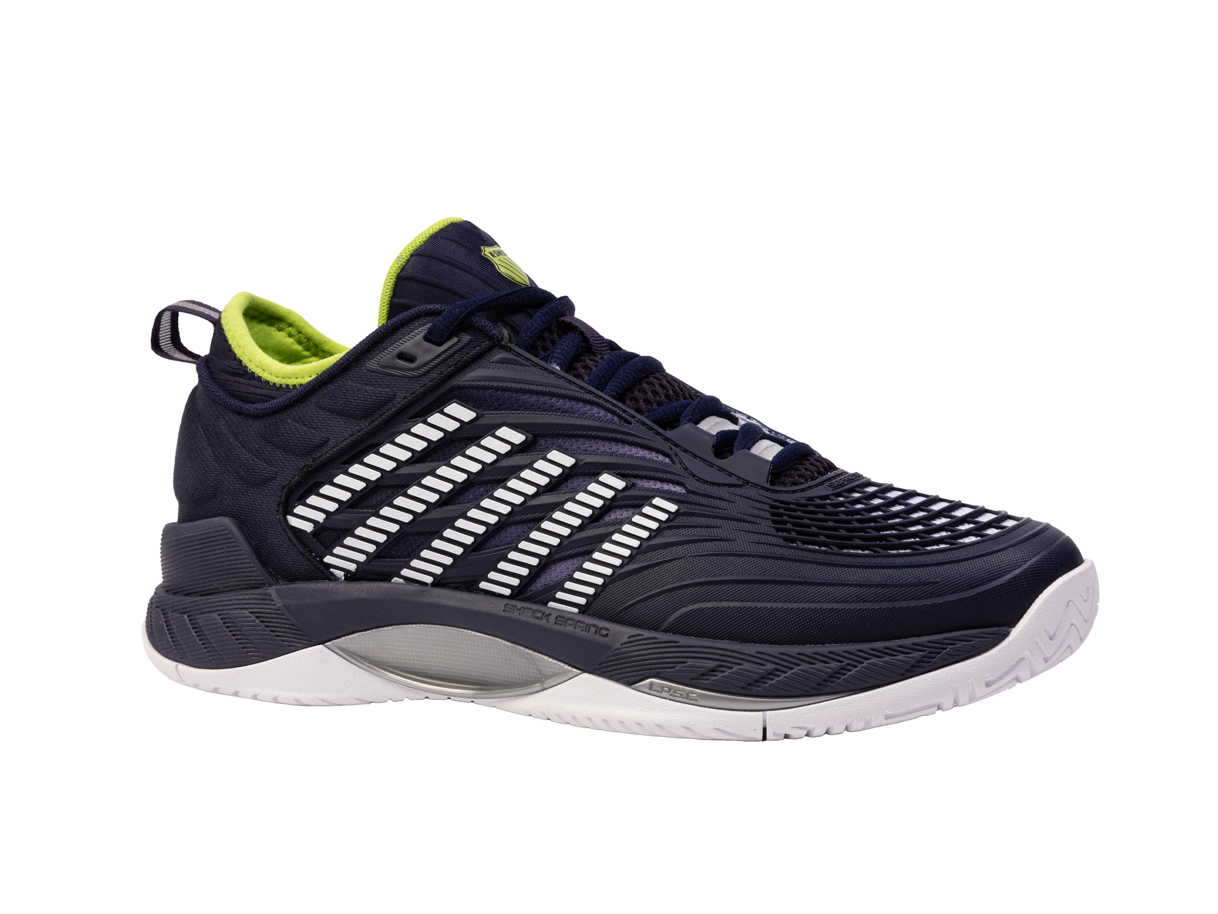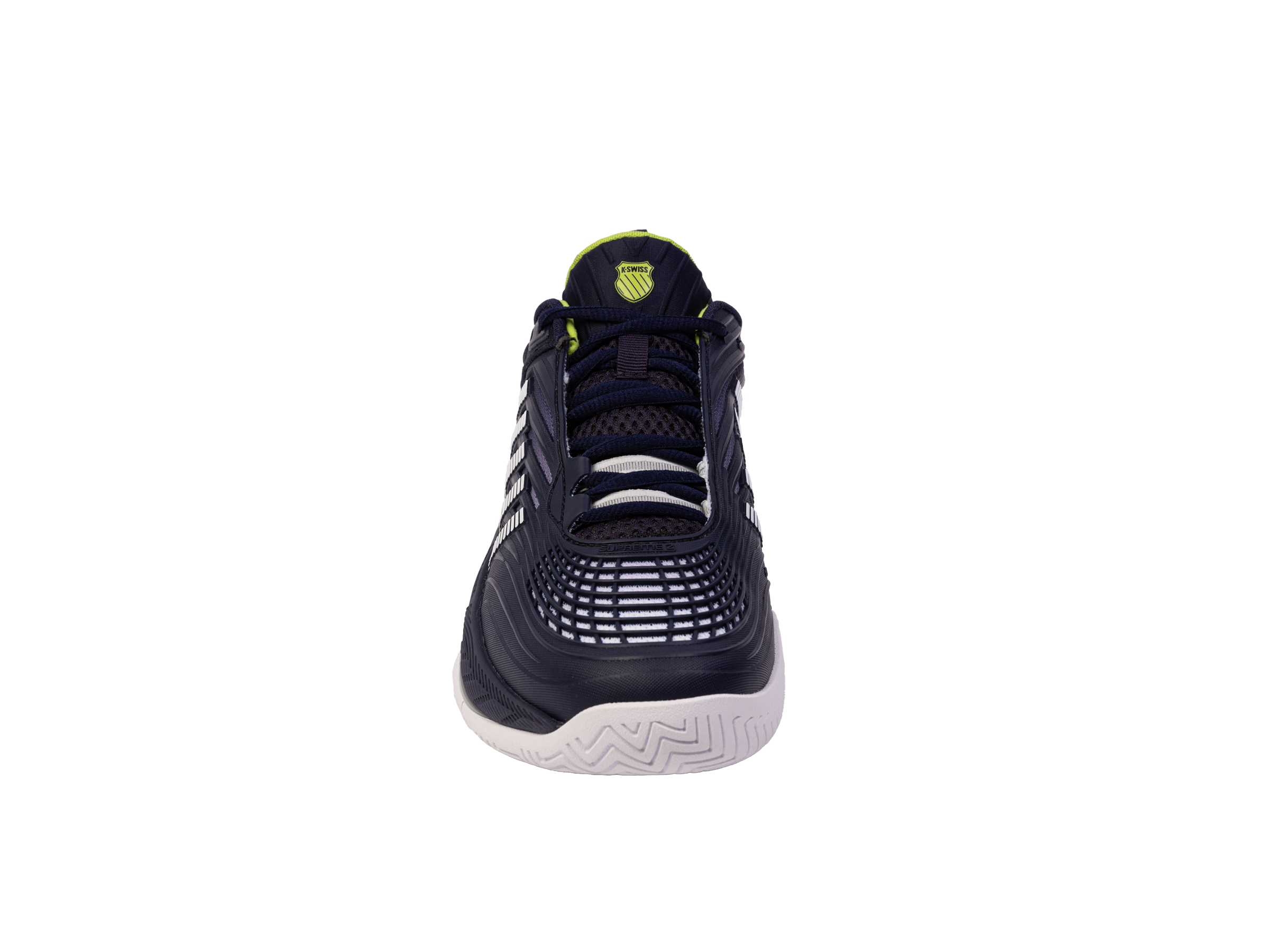 Der K-Swiss Hypercourt Supreme 2 ist das Spitzenmodell der Hyper-Serie. In diesem Jahr bringen wir eine aktualisierte Version auf den Markt, die eine noch sicherere Passform, noch besseren Halt und eine noch höhere Haltbarkeit bei gleichzeitig maximalem Komfort bietet. Das Obermaterial besteht aus Durawrap X, das für hervorragenden Halt und Schutz beim Rutschen sorgt und gleichzeitig ein flexibles Gefühl vermittelt, wenn Sie über den Platz sprinten. Die Dual-Density-Zwischensohle besteht für maximalen Komfort und Halt aus leichtem Surgelite-Außenschaum. Der reaktionsfreudige Shock-Spring-Innenschaum im Vorfußbereich ermöglicht noch schnellere Reaktionen bei jeder Aktion auf dem Platz. Die Dragguard-7.0-Gummilaufsohle verfügt über ein modifiziertes Fischgrätenprofil und sorgt für Traktion und Haltbarkeit auf allen Untergründen. Der neu entwickelte weiche Bootie-Kragen sorgt für einen sicheren Sitz um den Knöchel.