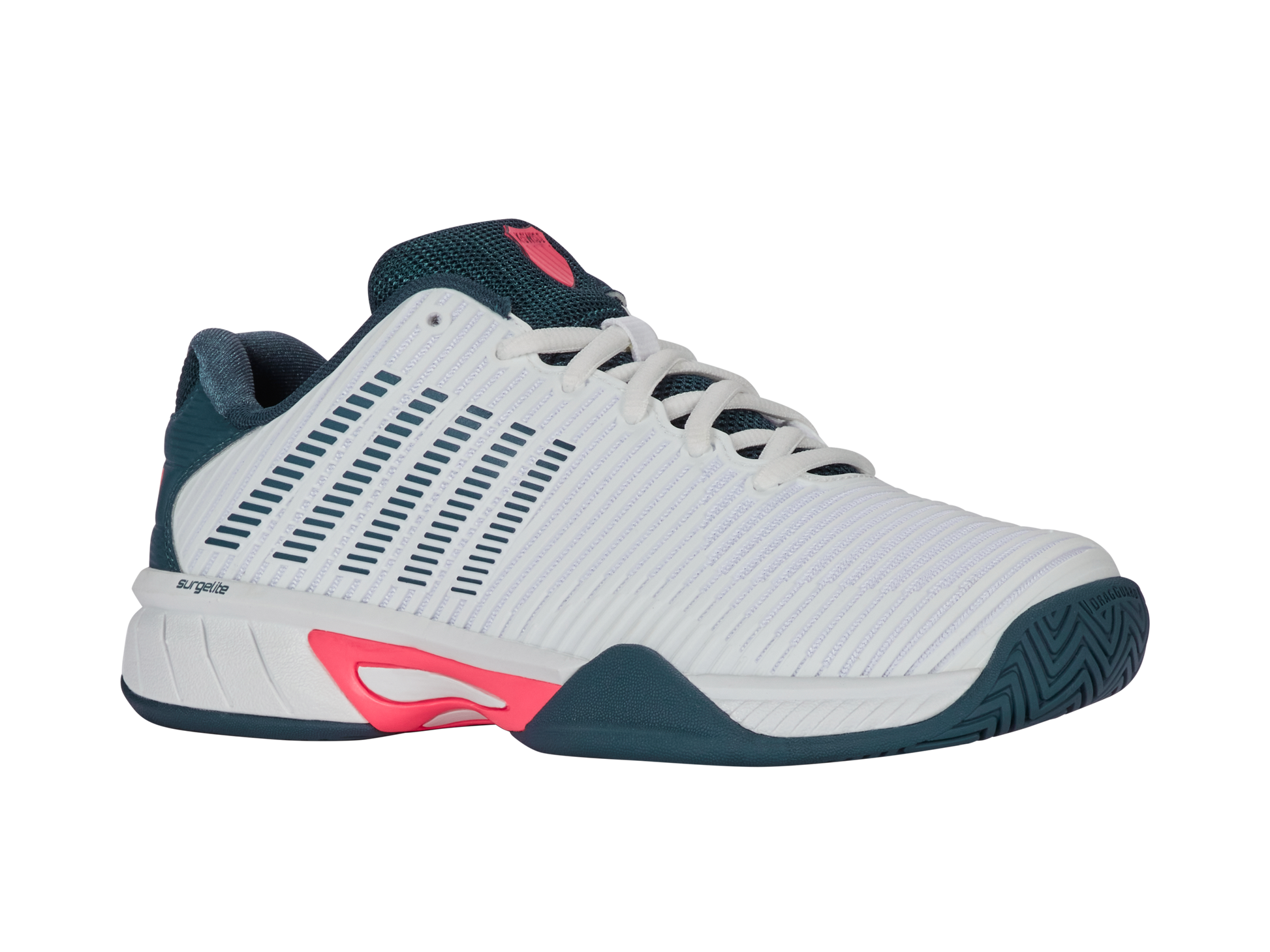 K-Swiss best-selling shoe, the Hypercourt Express 2, is light, comfortable, breathable, and has a generous fit, making it the ideal choice for a variety of playing styles and levels. Durawrap Flex, gives the shoe support with no break-in period, while Surgelite midsole technology provides all-day comfort.