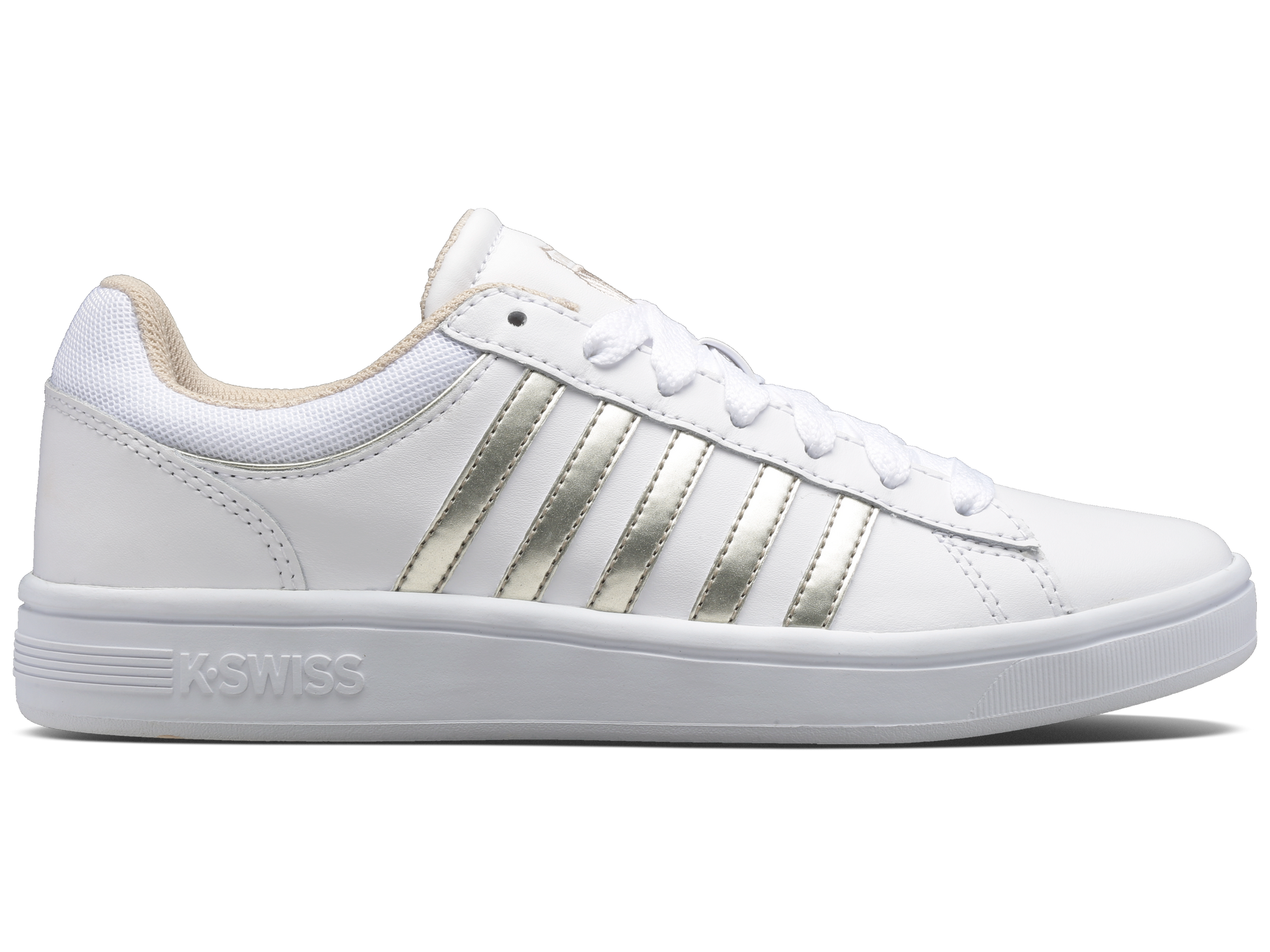 The Court Winston is a sleek, modern addition to K-Swiss ’ lineage of court sneakers. Made from smooth leather, the classic shoe features a traditional blucher toe for a polished look. The mesh lining makes the shoe breathable and comfortable. Leather overlays distinguish K-Swiss’ hallmark five stripes, which perfectly match the embroidered shield on the tongue . The Court Winston is a timeless style offering a dynamic look on and off the court.